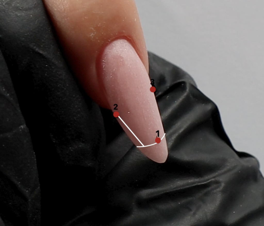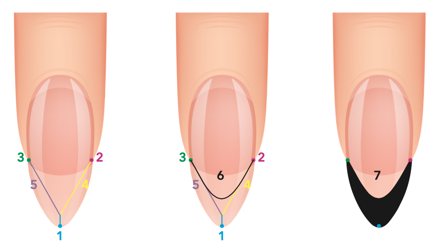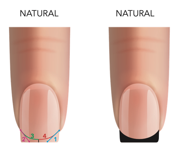 • Desenhe a curvatura de forma equilibrada e adaptada ao comprimento da unha.