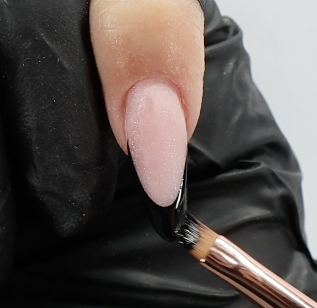 💡 Dica profissional: para aumentar ainda mais a aderência, higienize a unha após a realização da ponta francesa. Aplique um Sanitizer, desidratando toda a superfície, incluindo a ponta. Só depois finalize com o Crystal Shine Rapid, para um resultado esteticamente perfeito.
